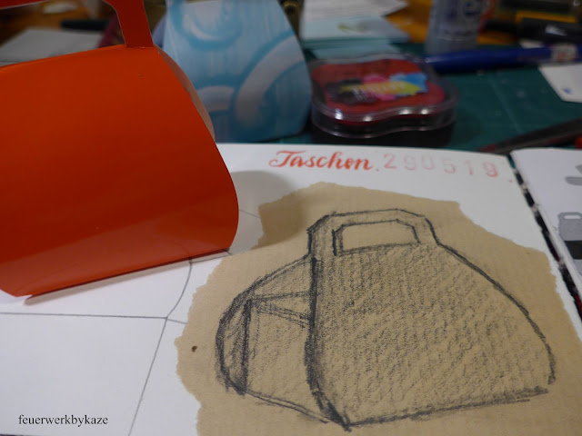 Ja, Schnittmuster sind dein Metier, und mir gefällt deine Idee, das Taschen-Schnittmuster in den Mittelpunkt zu rücken. Besonders die Linienüberlagerung spricht mich an, auch die gezeichnete Tasche! Ha, StarTreck-Flotte...es ist doch witzig, was einem immer so in den Sinn kommt!